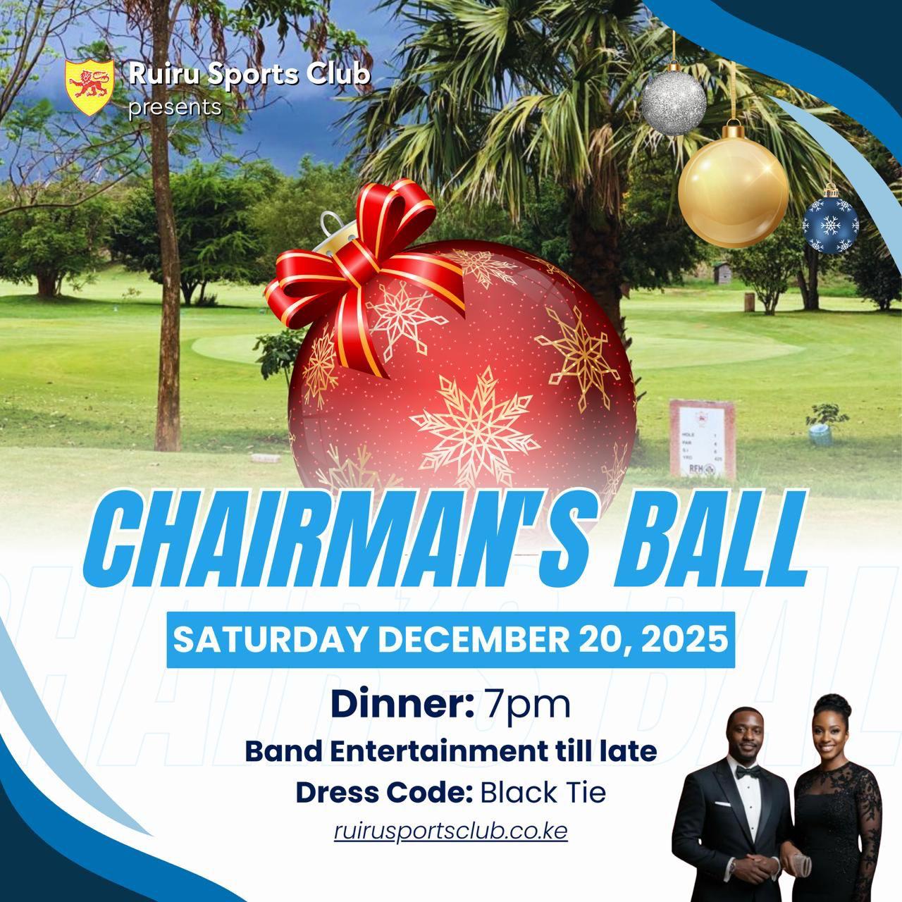 Ruiru Sports Club presents the Chairman’s Ball: Date: Saturday, 20th December 2025Dinner: 7:00 PMEntertainment: Live band entertainment till lateDress Code: Black Tie